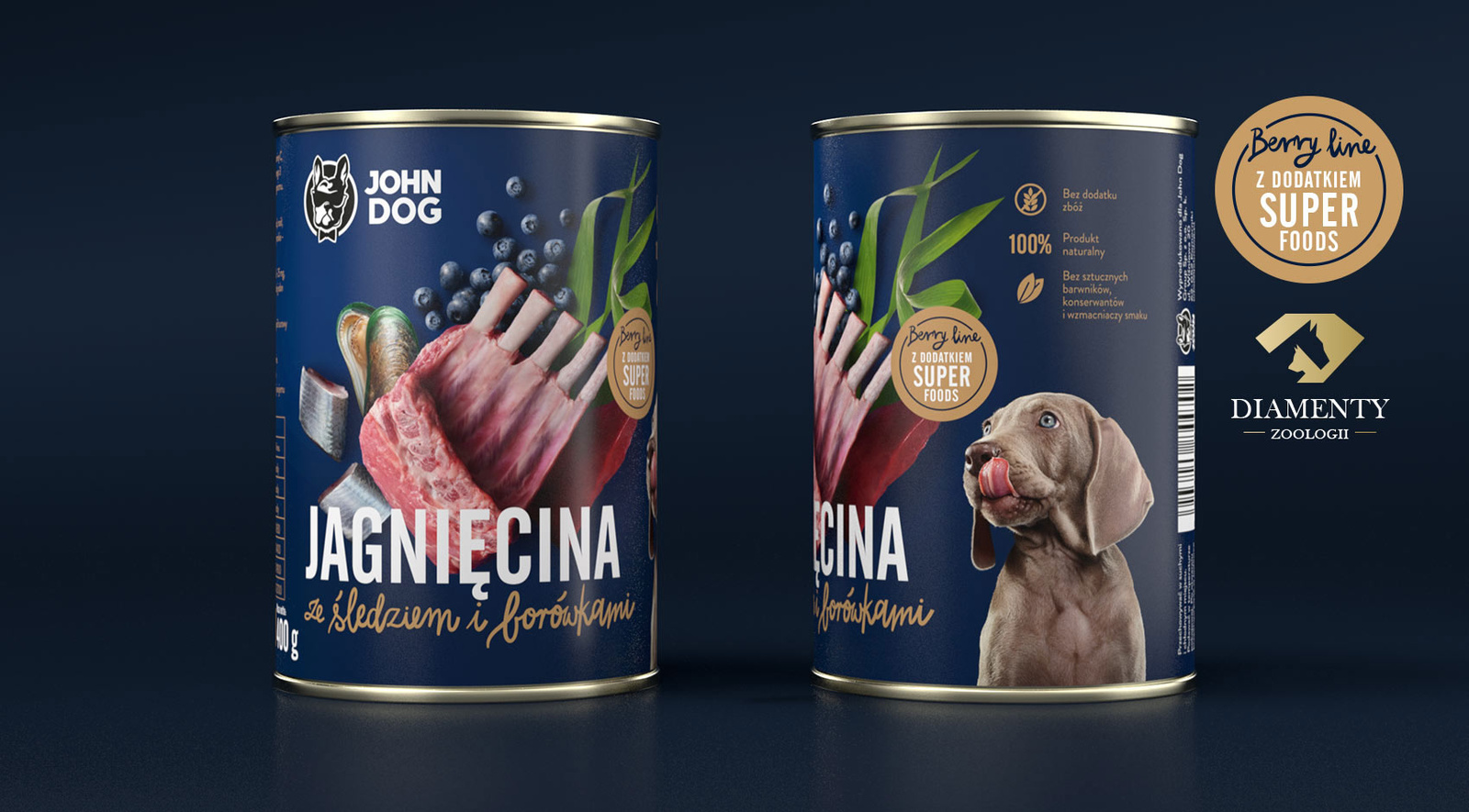John Dog Berry JUNIOR JAGNIĘCINA I ŚLEDŹ z borówkami 400g