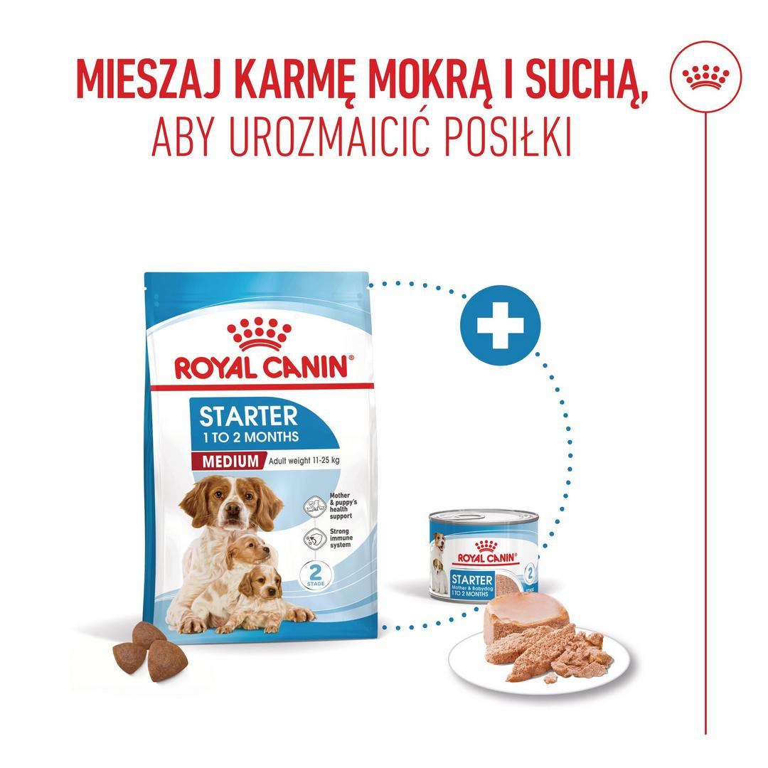 Karma sucha ROYAL CANIN® Medium Starter Mother & Babydog została specjalnie opracowana, aby pokrywać w pełni potrzeby pokarmowe ciężarnych i karmiących suk oraz szczeniąt. Karma jest przeznaczona dla dorosłych suk ras średnich, o masie ciała 11-25 kg, oraz dla szczeniąt w okresie odsadzania, do 2 miesiąca życia.