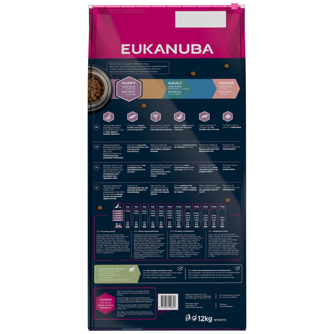 Eukanuba, sucha karma w formie granulek, jest bogata w jagnięcinę i ryż i idealnie się sprawdzi w przypadku rosnących szczeniąt psów dużych ras w wieku 1-12 miesięcy. Jest szczególnie odpowiednia dla szczeniąt o wrażliwych żołądkach, ponieważ najwyższej jakości jagnięcina i ryż są naprawdę lekkostrawne. Specjalnie dostosowana mieszanka błonnika z prebiotykami i pulpą buraczaną sprzyja także zdrowemu trawieniu.