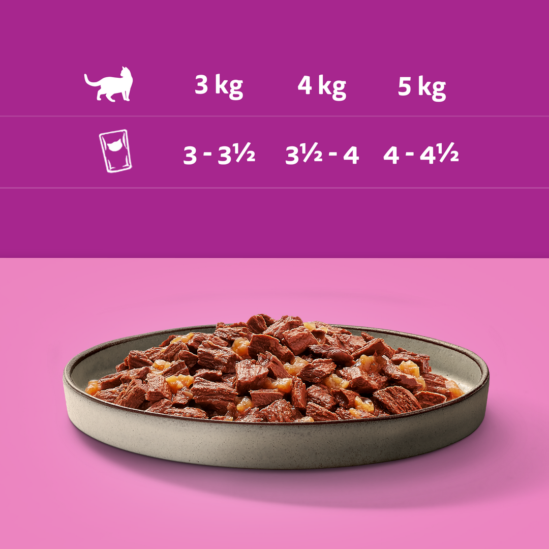 Ten smaczny pokarm w wygodnej saszetce zawiera cynk, który wspiera zdrowie skóry i sierści, a odpowiedni bilans minerałów pomaga zadbać o kondycję dróg moczowych Twojego pupila. Od figlarnego kocięcia po wspaniałego dorosłego kota – nasze smakowite receptury zostały opracowane z myślą o tym, aby kot w każdym wieku mruczał z zadowolenia w porze posiłku i nie tylko.