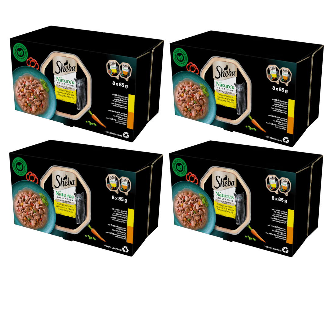 Mistrzowsko przygotowane posiłki z naturalnych składników wysokiej jakości, z witaminami oraz minerałami. Te bezzbożowe receptury oczarują Twojego kota tym, co najlepsze z natury. W każdej tacce znajdują się składniki odżywcze, wspierające prawidłowe funkcjonowanie Twojego kota. Pozwól swojemu kotu na kulinarną rozkosz, aby mógł delektować się pyszną karmą Sheba® Nature’s Collection, która zaspokoi nawet najbardziej wybredny apetyt.