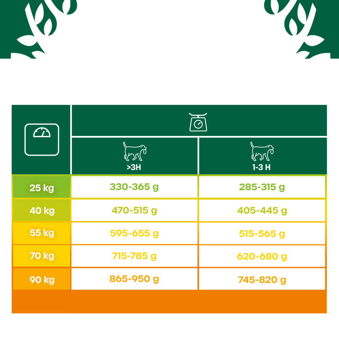 Składniki analityczne (%): białko: 25,3; zawartość tłuszczu: 14,9; popiół surowy (materia nieorganiczna): 7,8; włókno surowe: 3,3; kwasy tłuszczowe omega-3: 1,1; kwasy tłuszczowe omega-6: 3,4.