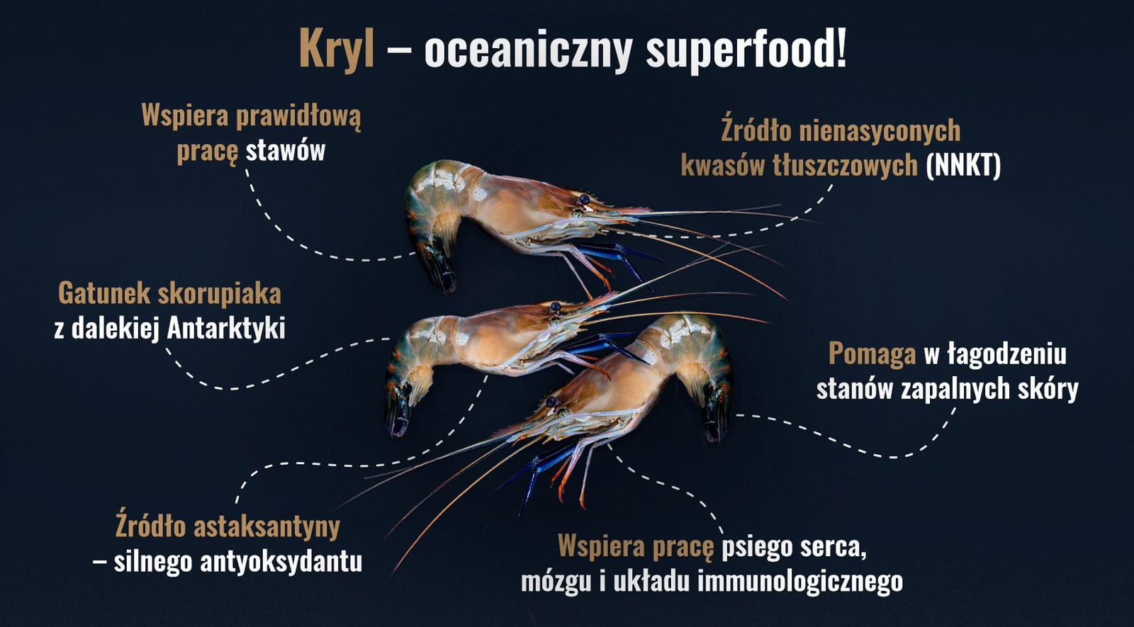 wołowina (50%, w tym świeża wołowina - 30%, suszona wołowina - 20%), płatki ziemniaczane, tłuszcz zwierzęcy (wołowy - 10,5%), białko zwierzęce (z wieprzowiny) hydrolizowane (5%), kryl antarktyczny suszony (4%), słodkie ziemniaki (bataty), wysłodki buraczane suszone (z buraków cukrowych), składniki mineralne, siemię lniane, cykoria suszona, drożdże piwne suszone, olej z łososia (0,5%), brokuły suszone, pomidory suszone, szpinak suszony, żurawina suszona (0,2%), jagody suszone (0,2%), ekstrakty roślinne (Jukka Mojave, Rosemarinus sp., Vitis sp., Curcuma sp., Citrus sp., Eugenia sp.).