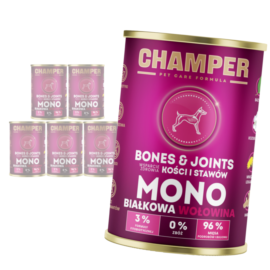 Champer Bones & Joints 6x400g Monobiałkowa Mokra Karma Dla Psa Z Wołowiną Wsparcie Zdrowia Kości I Stawów