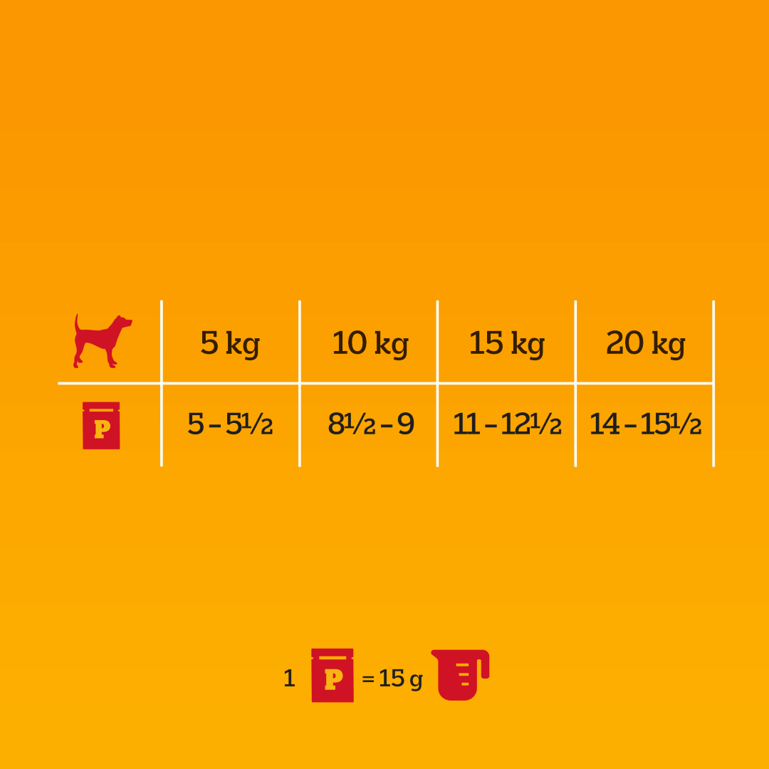 1 saszetkę można zastąpić 15 g karmy suchej PEDIGREE®.