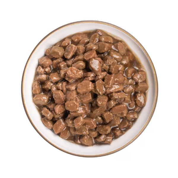 Karma przygotowana z najlepszej jakości, świeżych surowców mięsnych. Zawiera powyżej 70% surowca mięsnego w kawałkach zanurzonych w delikatnym sosie. Bogata w składniki odżywcze oraz witaminy.