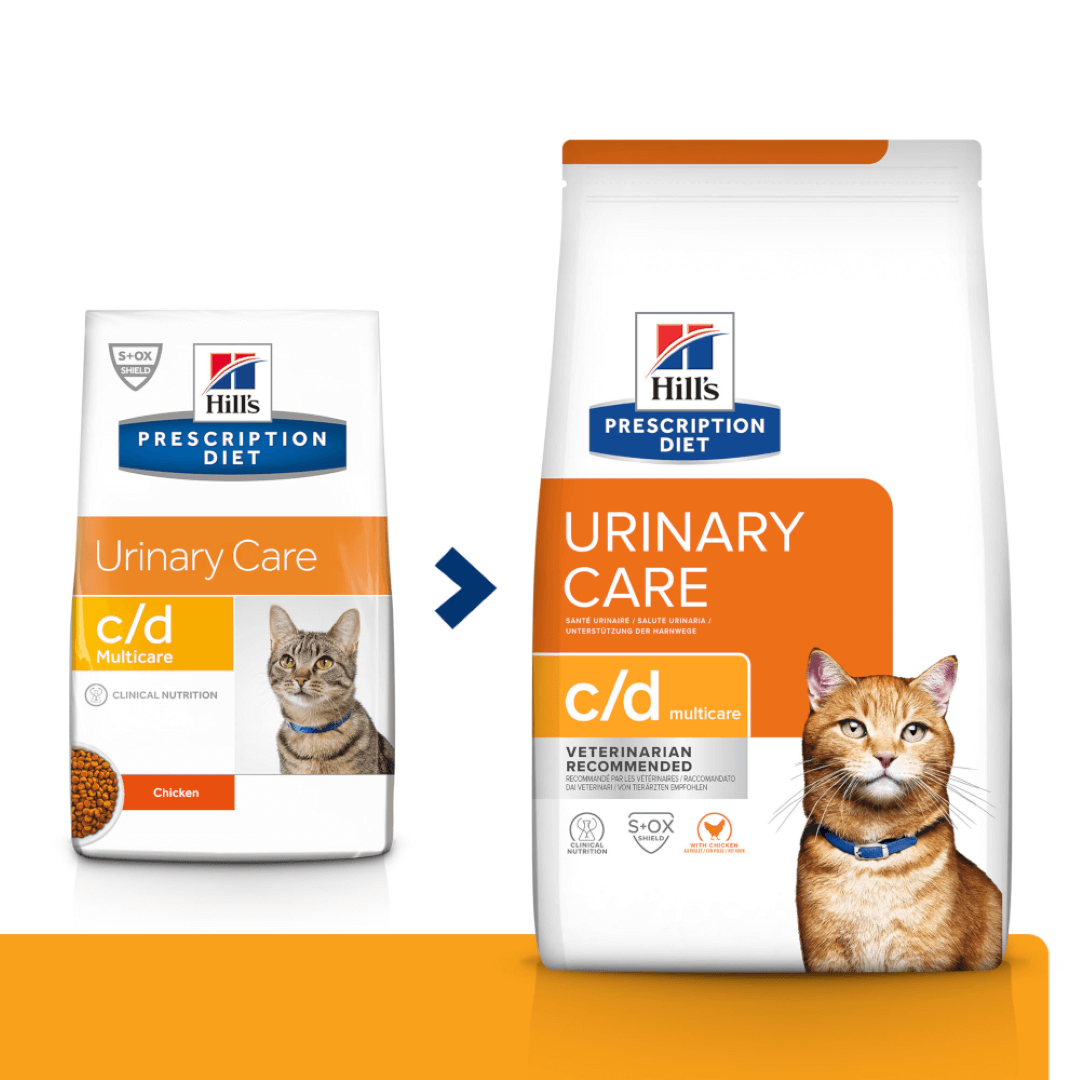 Karma dla kotów Hill's PRESCRIPTION DIET c/d Multicare z kurczakiem to pełnoporcjowa karma dietetyczna wspomagająca redukcję nawrotów kamieni struwitowych (przyczyna schorzeń dolnych dróg moczowych, FLUTD), rozpuszczanie kamieni struwitowych oraz redukcję powstawania kamieni ze szczawianu wapnia u dorosłych kotów. Ta karma ma własności zmniejszające nasycenie moczu struwitem, własności alkalizujące mocz oraz ma niską zawartość magnezu, wapnia i witaminy D.