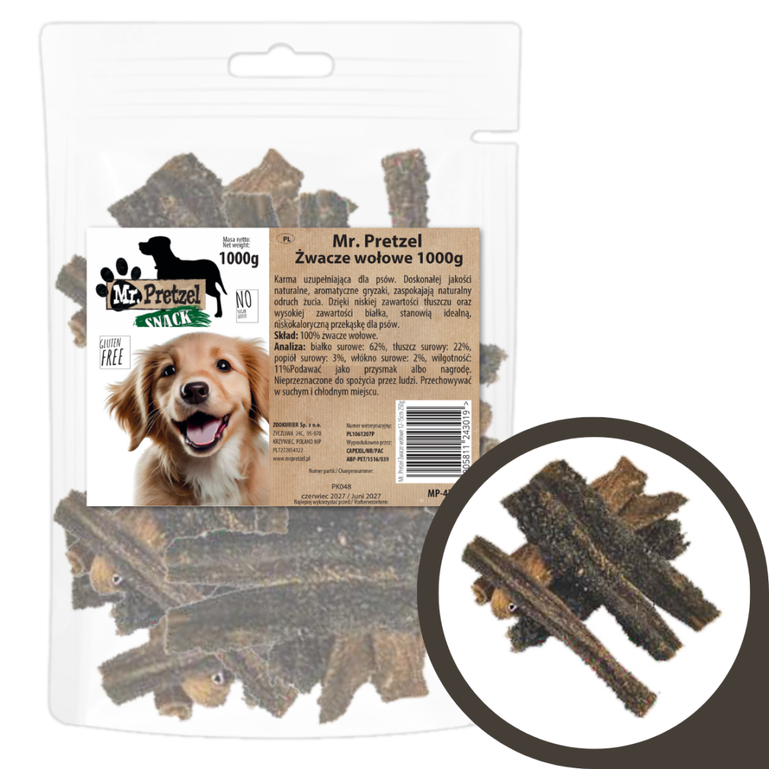 Mr. Pretzel 1kg Naturalny Przysmak Dla Psa Żwacze wołowe 12-15cm