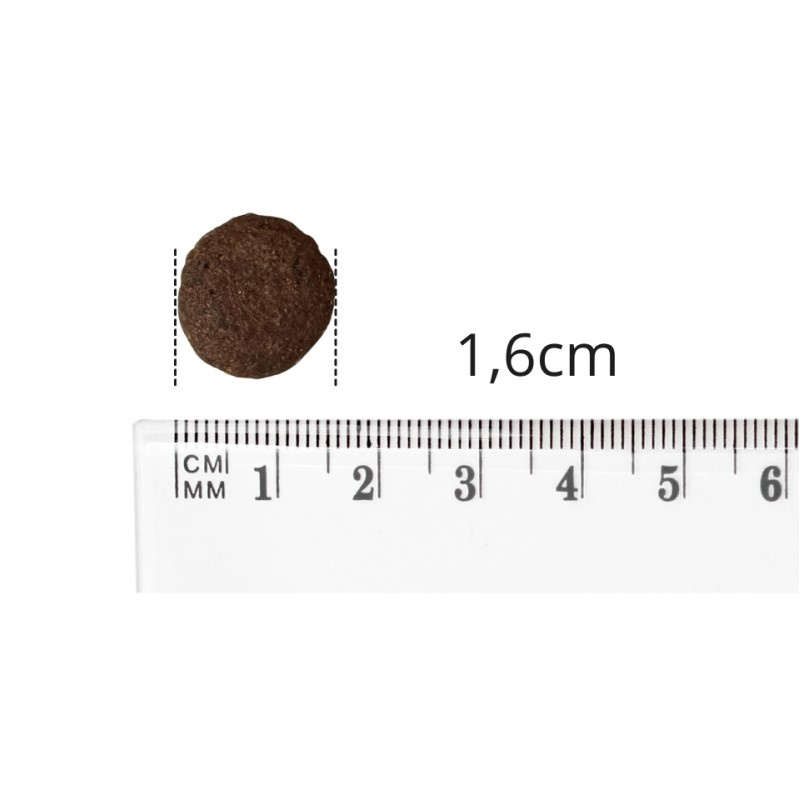 Składniki analityczne: Białko surowe 28%, Tłuszcz surowy 15%, Włókno surowe 3%, Popiół surowy 9%, Wapń (Ca) 1,2%, Fosfor (P) 1%, Omega-3 21,7%