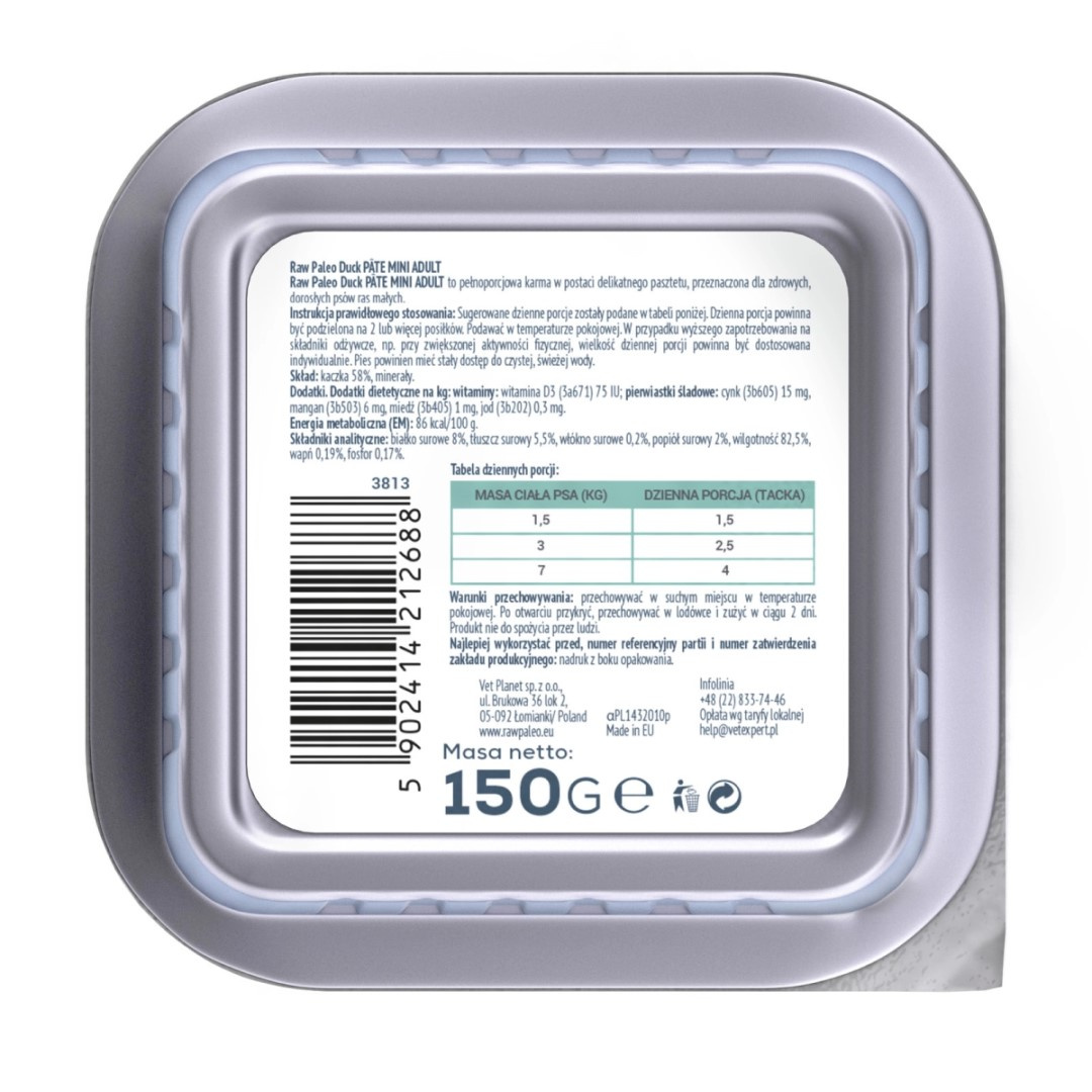 Raw Paleo Duck Pate Mini Adult 150g Monoproteinowa Mokra Karma