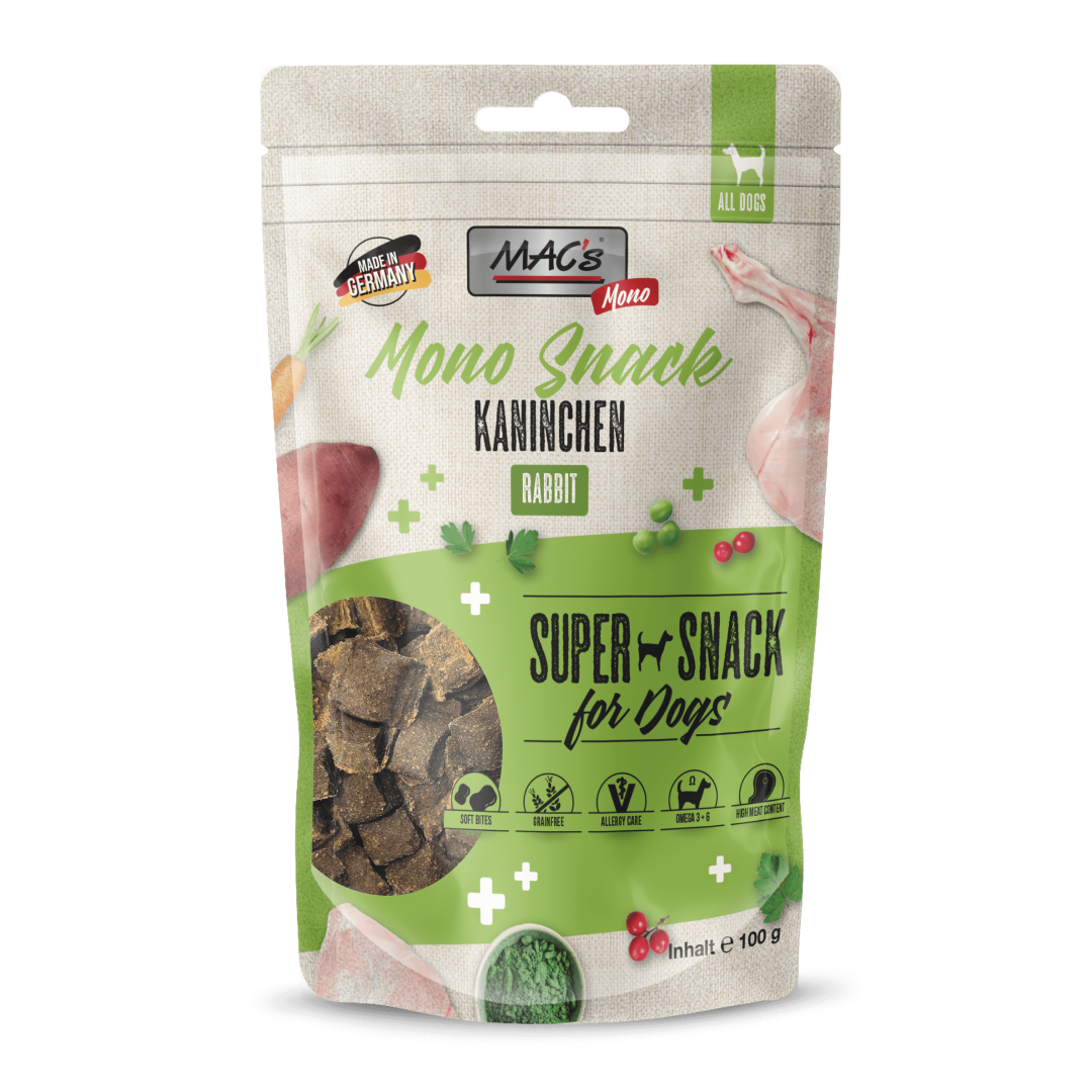 Przysmaki MAC's MONO zostały opracowane specjalnie dla psów wrażliwych. Dzięki pojedynczemu źródłu białka zwierzęcego są idealne dla psów z alergiami. W połączeniu z mokrą karmą MAC's MONO i suchą karmą MAC's MONO, przysmaki tworzą zbilansowaną odżywczo koncepcję – idealną w diecie eliminacyjnej.