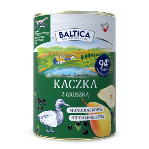 Doskonale zbilansowana mokra karma najwyższej klasy stworzona z myślą o właścicielach chcących dać swoim psom to, co najlepsze. Pełnowartościowe źródła białka z pysznymi dodatkami dostarczą Twojemu psu wszelkich składników. Delikatne mięso z kaczki zawarte w karmie BALTICA będąca bogatym źródłem białka z dodatkiem gruszki dostarczającej wielu cennych witamin i minerałów to nie tylko gwarancja pysznego, ale też pełnowartościowego i zdrowego posiłku dla Twojego psa. Daj swojemu psu to, co najlepsze!