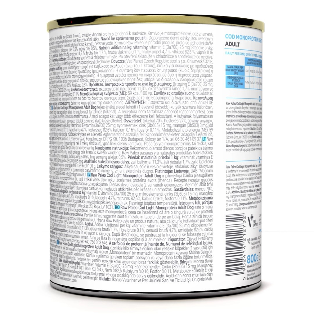 Raw Paleo Adult Monoprotein Light 800g Bezzbożowa Mokra Karma z Dorszem
