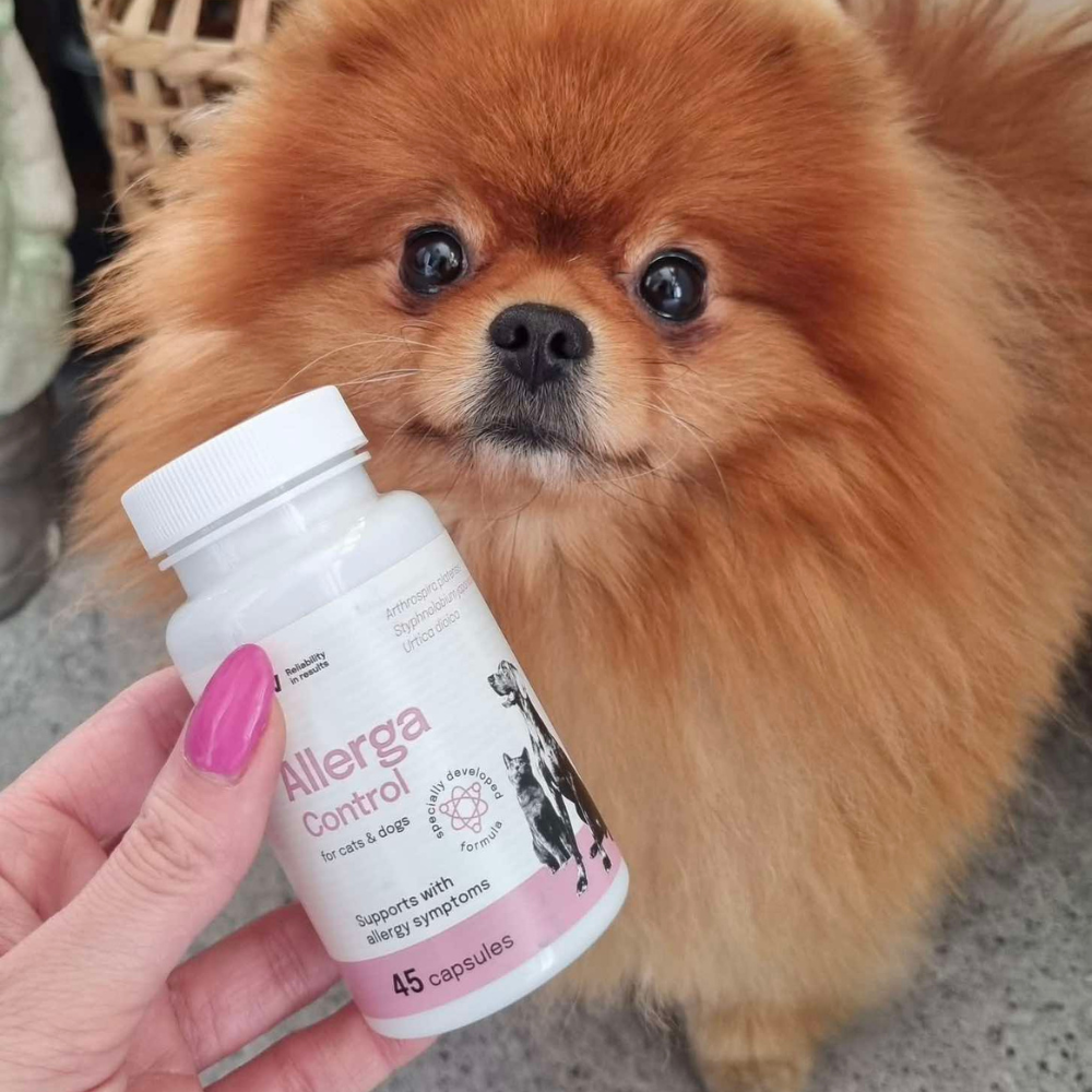 Allerga Control to specjalistyczny preparat w formie kapsułek, opracowany z myślą o psach i kotach zmagających się z objawami alergii.