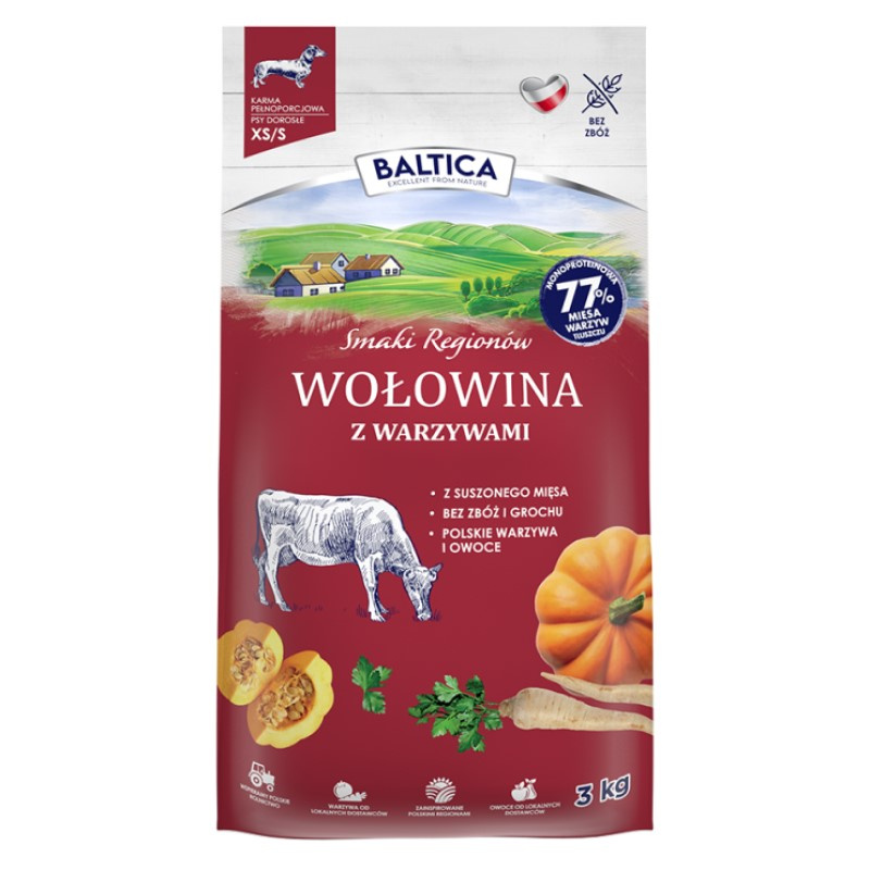 Baltica Smaki Regionów Wołowina Z Warzywami XS/S 3kg Sucha Karma