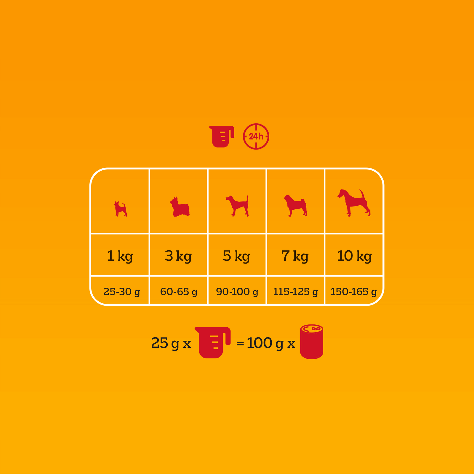 25g karmy suchej można zastąpić 1 saszetką 100 g karmy mokrej PEDIGREE.