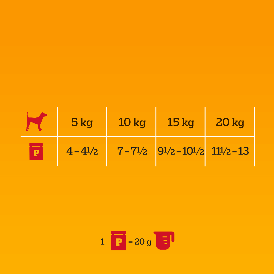 1 saszetkę można zastąpić około 20 g karmy suchej PEDIGREE®.