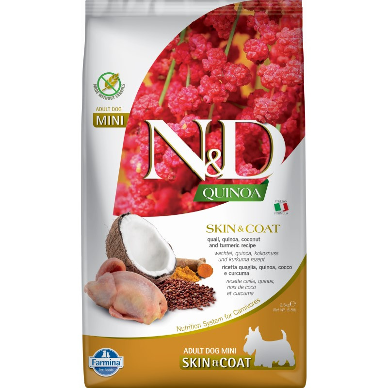 Farmina N&D Quinoa Skin & Coat to kompletna karma dietetyczna dla psów zalecana w celu obniżenia nietolerancji składników i substancji odżywczych.