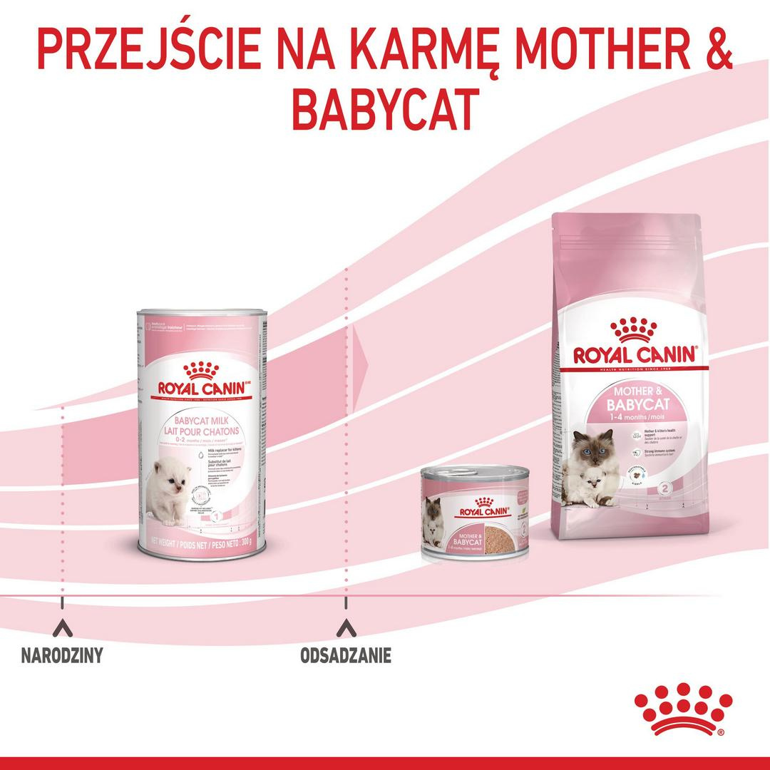 Mleko ROYAL CANIN Babycat, odpowiednie dla kociąt od urodzenia do odsadzenia, ma formułę możliwie najbardziej zbliżoną do mleka matki. Receptura zawiera optymalny poziom laktozy, wysokostrawne białka i prebiotyki, które wspierają zdrowie układu trawiennego Twojego kocięcia, utrzymując prawidłową mikroflorę przewodu pokarmowego.