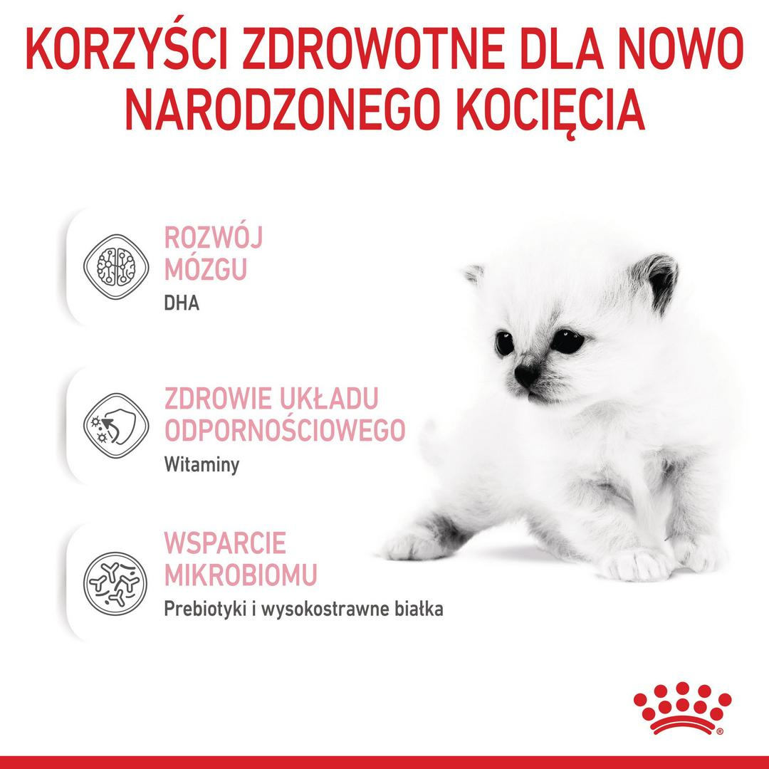 Zaleca się zapoznanie z instrukcją karmienia na opakowaniu, aby upewnić się, że kocię otrzymuje odpowiednią ilość karmy zapewniającą optymalne wsparcie.
