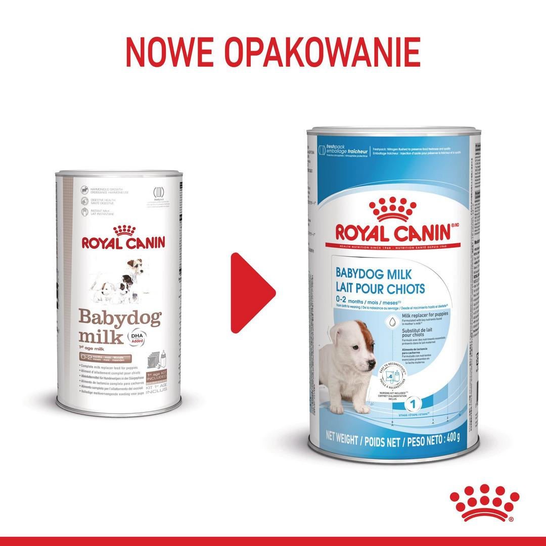 Mleko ROYAL CANIN Babydog jest wzbogacone o DHA (niezbędny kwas tłuszczowy Omega-3), który naturalnie występuje w mleku matki i pomaga wspierać rozwój poznawczy szczenięcia.