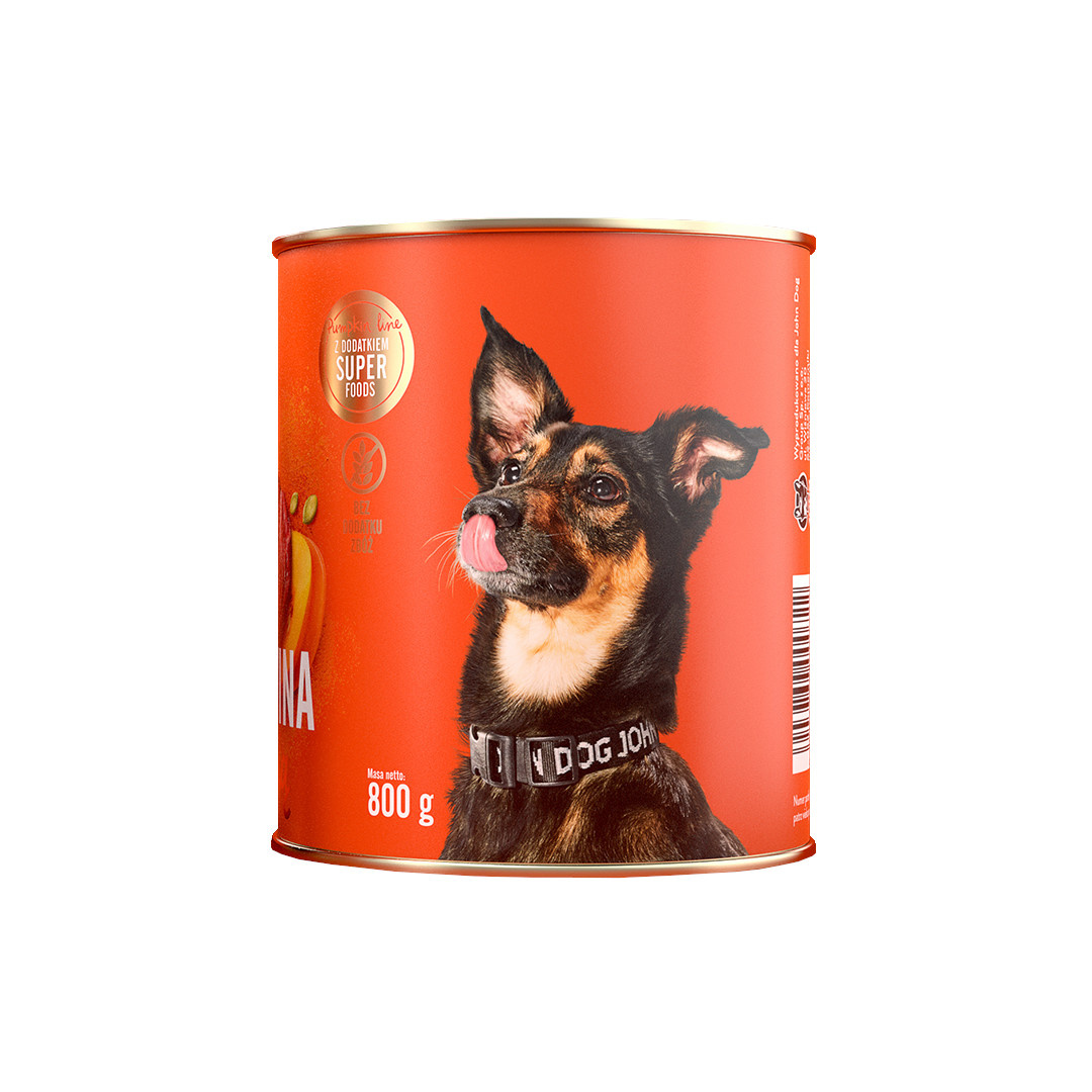 Pełnoporcjowa karma mokra dla dorosłych psów wszystkich ras. PRODUKT 100% NATURALNY, BEZ DODATKU ZBÓŻ, sztucznych barwników i KONSERWANTÓW.